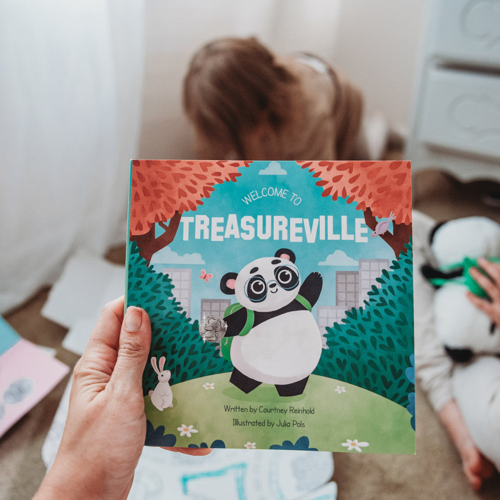 📘 Storybook: Each book is signed by the author and includes a personalized message just for your child. Bonus: Stickers for hands-on learning fun!🐼 Finley Plush Panda: A cuddly companion to make Treasureville come to life!